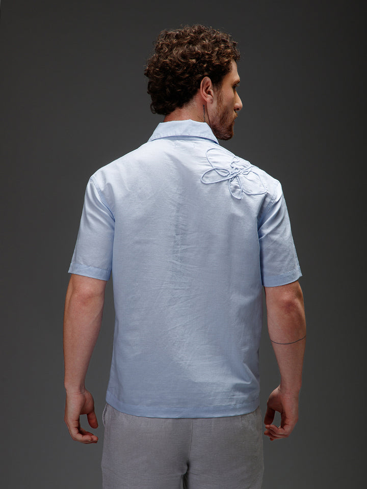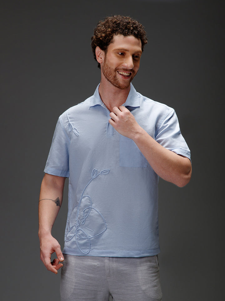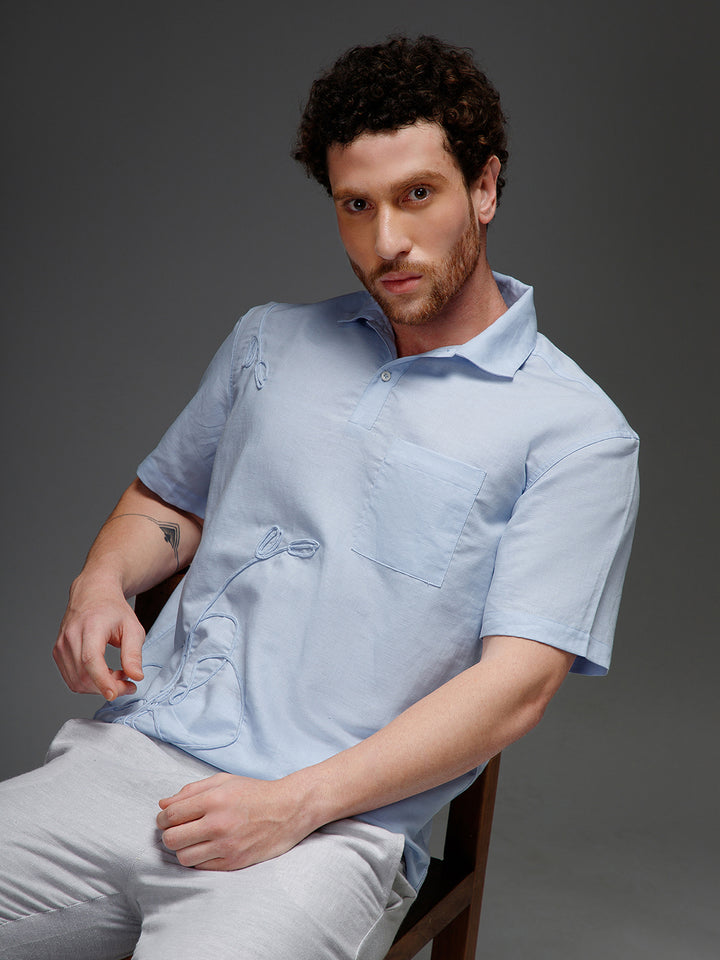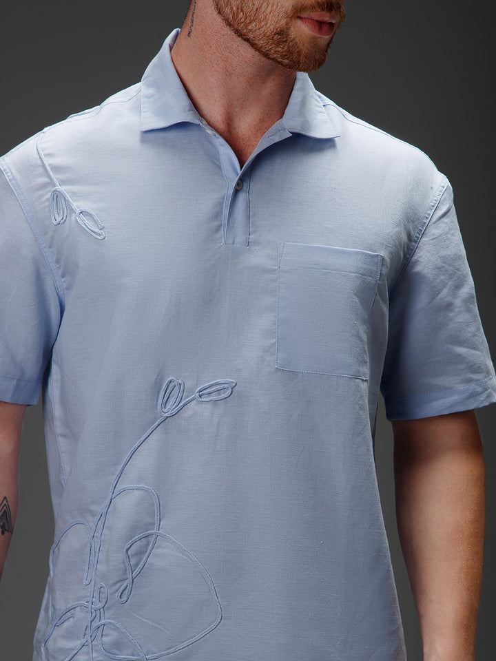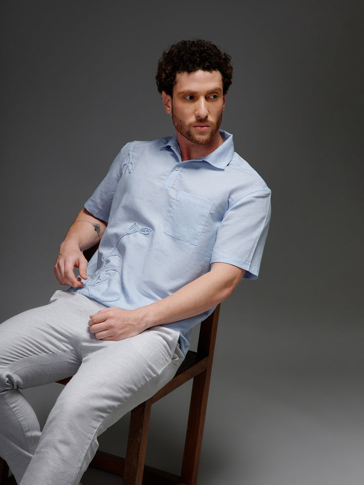 Cut from breathable organic cotton-linen blend, the Luca shirt keeps you cool, comfortable, and polished from desk to dinner. A tonal cord embroidery - subtly tracing a botanical motif, adds quiet character without overwhelming the clean silhouette. The short sleeves shirt offers a light, soft hand-feel with a relaxed, easy fit that moves with you. Effortless style meets mindful design here.