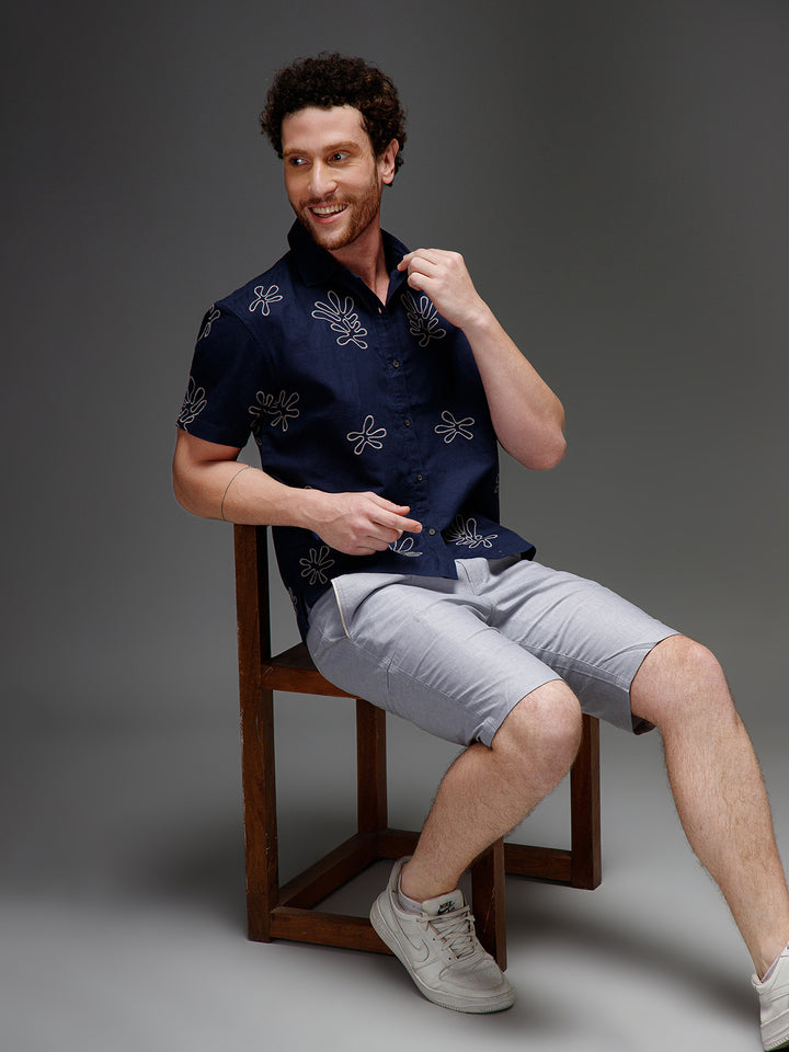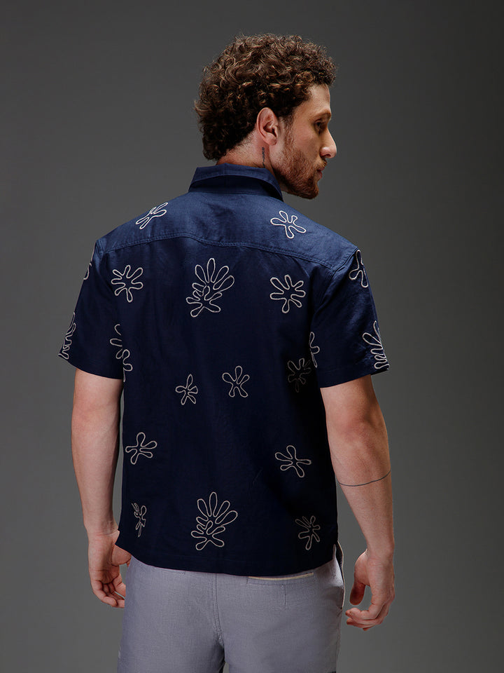 This short‑sleeve shirt is cut from a breathable blend of organic cotton and natural linen - lightweight, moisture‑wicking and comfortable against the skin. An all‑over, tone‑on‑tone embroidery adds refined texture and movement while keeping the look clean and versatile. Consciously crafted for everyday refinement, this is the shirt you’ll reach for when you want breathable comfort and quiet character. Elevated ease, consciously made.