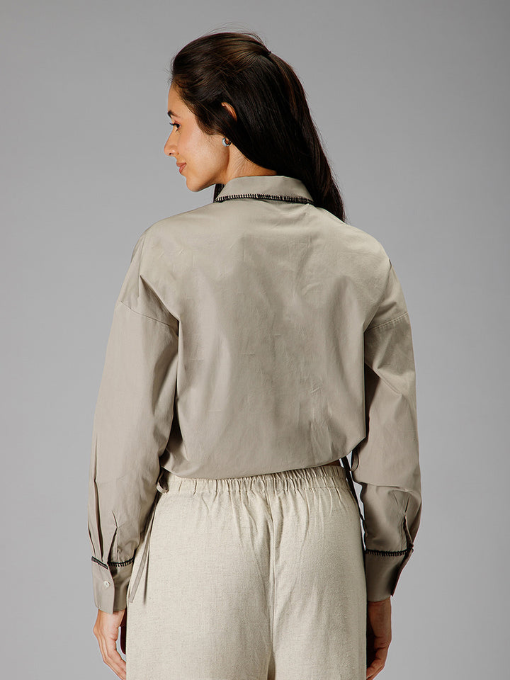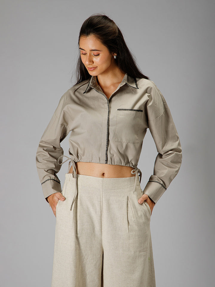 Vivian Shirt | Women’s Cotton Satin Shirt with Adjustable Waist & Stitch Detailing